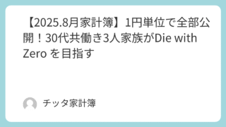 • 【2025.8月家計簿】1円単位で全部公開!30代共働き3人家族がDie with Zero を目指す
