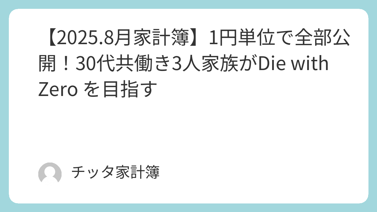 【2025.8月家計簿】1円単位で全部公開!30代共働き3人家族がDie with Zero を目指す
